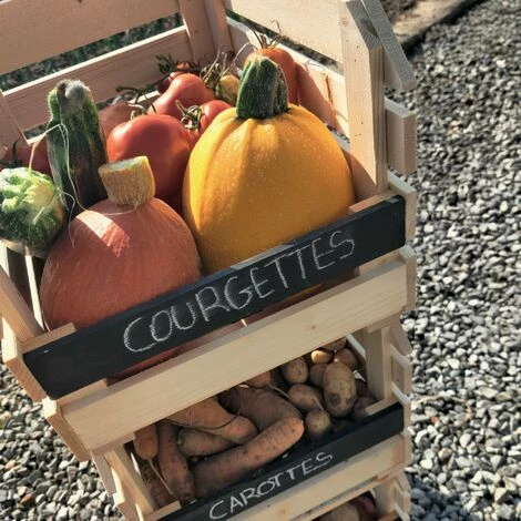 Dieses Set aus 3 natürlichen Kiefernholzkisten ist ideal für die Aufbewahrung von Gemüse in Ihrer Speisekammer! Mit diesen drei Fächern wird es Ihnen leicht fallen, Ihr Gemüse zu trennen, und dank der drei Schiefertafeln wissen Sie, was sich in den einzelnen Fächern befindet. Um den Transport zu erleichtern, sind diese Kisten stapelbar und die untere hat 4 Räder. Sie können sie aber auch einzeln verwenden, wenn Sie möchten. Jedes Regal ist perforiert, damit die Luft frei zirkulieren kann.<br/>Technische Einzelheiten