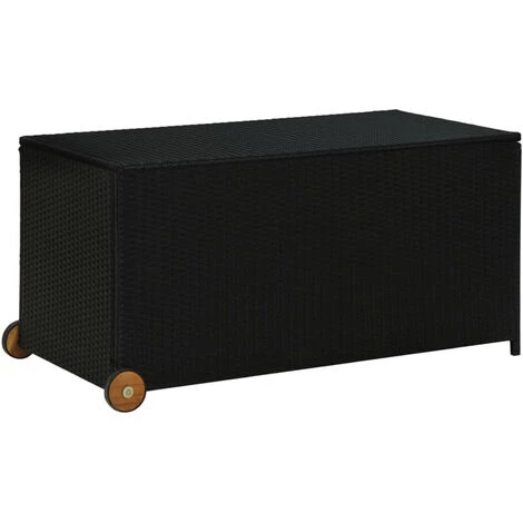 Mit dieser Aufbewahrungsbox sorgen Sie fur Ordnung im Garten oder auf der Terrasse. Die Box besteht aus strapazierfahigem und wetterbestandigem Poly Rattan und eignet sich sowohl fur den Innen- als auch fur den AuBenbereich. Diese Kissenbox eignet sich zur Aufbewahrung Ihrer Kissen, Auflagen, Decken, Spielsachen und anderer Gegenstande. Der olbeschichtete Holzgriff und eine wasserdichte Innentasche schutzen Ihre Artikel vor Feuchtigkeit. Die Terrassenbox ist mit 2 Radern und einem Griff auf der einen Seite fur einen einfachen Transport ausgestattet. Zudem lasst sie sich leicht mit einem feuchten Tuch reinigen. Hinweis: Bitte decken Sie die Auflagenbox mit wasserdichtem Stoff/Material ab, damit bei Regen kein Wasser in die Box eindringt.