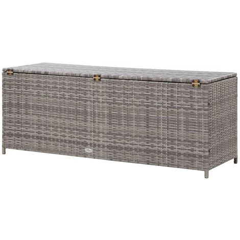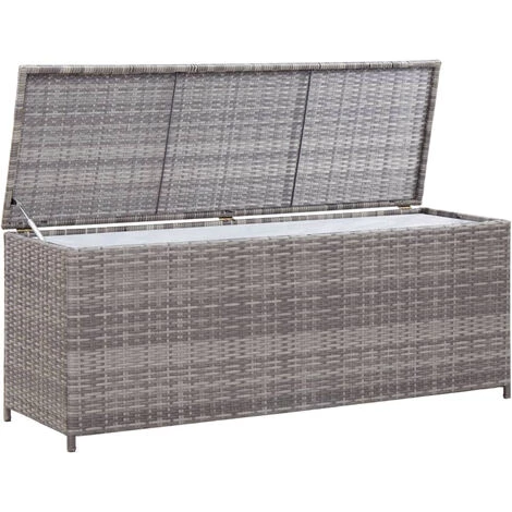 Diese wasserfeste Garten-Aufbewahrungsbox aus Rattan eignet sich ideal zum Aufbewahren von Decken, Kissen, Sitzpolstern, Spielzeug, Buchern und anderen Gegenstanden, die im Garten oder auf der Terrasse herumliegen. Diese Aufbewahrungsbox verfugt uber ein wasserfestes Futter und bietet deshalb eine ideale Losung fur die Lagerung Ihrer Gartenkissen und aller Arten von anderen Gegenstanden. Dank dem witterungsbestandigen und wasserfesten PE-Rattan ist diese Aufbewahrungsbox einfach zu reinigen, strapazierfahig und fur den taglichen AuBengebrauch geeignet. Die Truhe hat einen stabilen, pulverbeschichteten Stahlrahmen, der sehr widerstandsfahig ist. Das wasserfeste Polyester-Futter wird den Inhalt vor Feuchtigkeit schutzen.