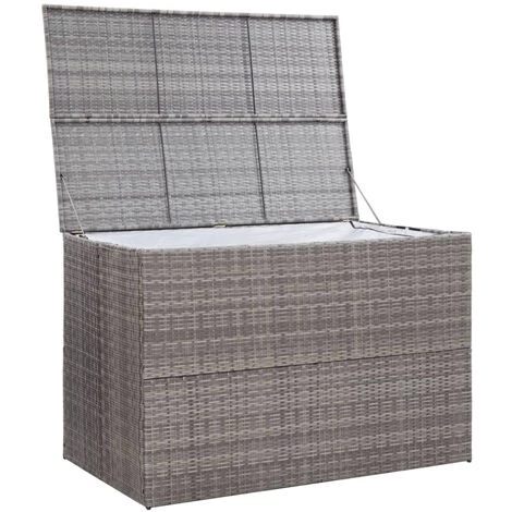 Unsere wasserfeste Garten-Aufbewahrungsbox aus Poly-Rattan ist ideal fur die Aufbewahrung von Gartenmobelpolstern, Kissen, zusatzlichen Decken oder Handtuchern sowie fur Garten- und Haushaltsartikel und vieles mehr. Dank des witterungsbestandigen und wasserresistenten PE-Rattans ist die Truhe leicht zu reinigen, strapazierfahig und fur den AuBen- und Innenbereich geeignet. Die Garten-Aufbewahrungstruhe verfugt uber einen robusten, pulverbeschichteten Stahlrahmen, der auBerst stabil ist. Das wasserfeste Innenfutter mit ReiBverschluss schutzt den Inhalt vor Feuchtigkeit. Die Aufbewahrungstruhe verfugt uber ein modernes Design, das zu jedem Wohnraum innen und auBen passt. Die Aufbewahrungstruhe ist leicht zu montieren.