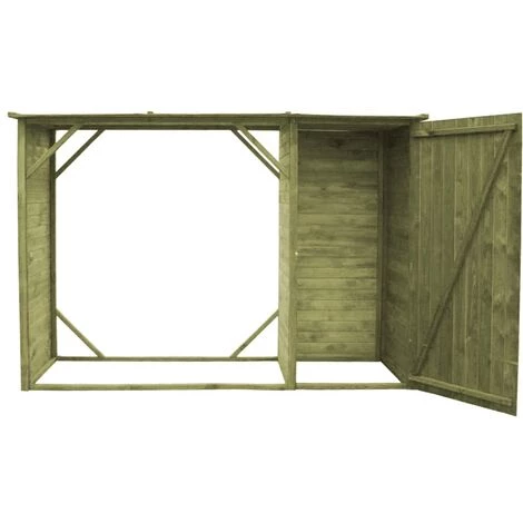Unser 2-in-1 Lagerschuppen fur Brennholz und Werkzeuge strahlt einen rustikalen Charme aus und ist eine praktische Erganzung fur Ihre Terrasse, Ihren Garten oder Ihren Hinterhof. Bestehend aus einem Holzlagerregal und einem groBen Schrank bietet der Gartenschuppen reichlich Platz fur die Organisation von Brennholz, Klafterholz sowie Werkzeugen, Gartengeraten usw. Dieser Gartenschuppen besteht aus Kiefernholz, das umweltfreundlich ist. Das impragnierte Kiefernholz ist strapazierfahig und witterungsbestandig. Daruber hinaus ist das Dach mit wasserfestem Teerpapierfilz ausgekleidet. Dieser Holzschuppen ist einfach zu montieren. Bitte beachten Sie, dass Holz ein Naturprodukt ist und UnregelmaBigkeiten aufweisen kann.