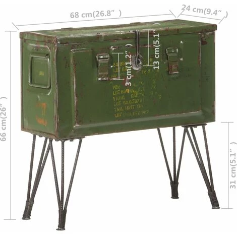Schaffen Sie cleveren Stauraum mit dieser schlichten Aufbewahrungstruhe im Military-Design. Diese Kiste eignet sich auch als Beistellschrank, Beistelltisch, Sideboard, usw.