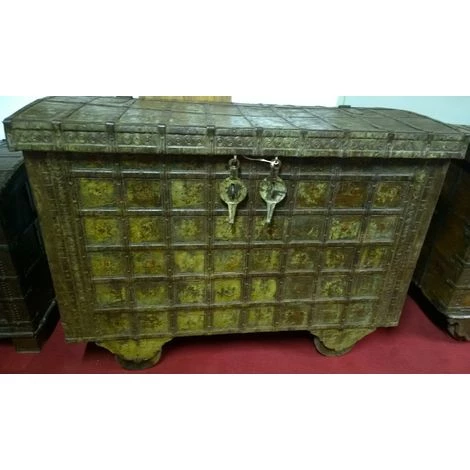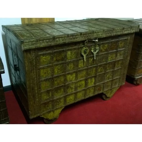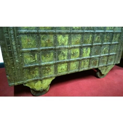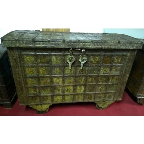 Koffer aus Holz und Eisen mit den Abmessungen L125xPR68xH93 cm. Sehr geräumig und leicht zu bewegen dank der vier Räder, die durch die Holzverkleidung geschickt verborgen sind. Doppelvorhängeschloss (nicht im Lieferumfang enthalten) und eiserne Seitengriffe. Diese in traditioneller Weise gefertigte Schatztruhe ist ein einzigartiges Stück wertvoller und alter Handwerkskunst, dessen kleine Mängel nicht als Mängel, sondern als Eigenschaften des Objekts angesehen werden. Ideal für Enthusiasten und Kenner …Alle Maße beziehen sich auf die maximale Größe des Artikels