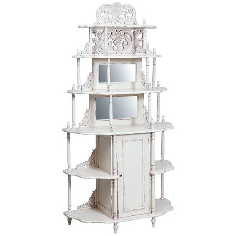 Originelle und vielseitige Etagere aus massivem Mahagoniholz 100x39x190 cm, handgeschnitzt. Es hat acht Regale, ein geschlossenes Fach und einen zentralen Spiegel. Dekorieren Sie jede Umgebung mit ungewöhnlicher EleganzAlle Maße beziehen sich auf die maximale Größe des Artikels