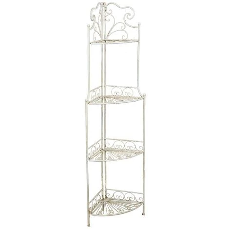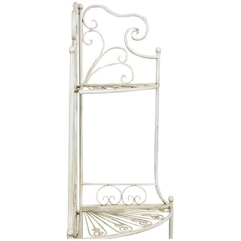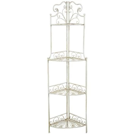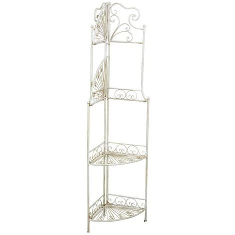 Praktische, elegante und vielseitige Ecketagere aus Schmiedeeisen. Größe L46xPR32xH155 cm. Das Produkt ist ausgestattet mit 4 praktischen, klappbaren Regalen und kann im Garten als Vasenhalter o.ä., im Haus für Pflanzen oder zur Aufbewahrung von Gegenständen verwendet werden.Alle Maße beziehen sich auf die maximale Größe des Artikels