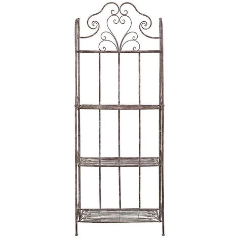 Praktische, elegante und vielseitige Etagere aus Schmiedeeisen. Größe L63xPR33xH165 cm. Das Produkt ist ausgestattet mit 4 praktischen, klappbaren Regalen und kann im Garten als Vasenhalter o.ä., im Haus für Pflanzen oder zur Aufbewahrung von Gegenständen verwendet werden.Alle Maße beziehen sich auf die maximale Größe des Artikels