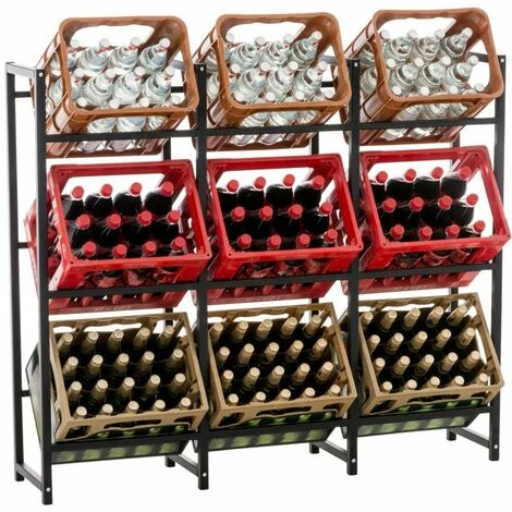 9er Getränkekistenständer Lennert – Der edle HelferDieser Getränkekistenständer kann sich sehen lassen! Er ist nicht nur praktisch, sondern auch ein hochwertiger Hingucker. Mit Hilfe der schrägen Positionierung der Kisten können die Flaschen jederzeit bequem entnommen und eingestellt werden. Der Ständer lässt sich ebenso mit anderen Behältern bestücken wie zum Beispiel mit Holzkisten. Dabei muss er nicht zwangsläufig im Keller landen: Durch seine edle Optik ist er besonders gut im Wohnbereich einsetzbar. Erhältlich ist er in 2 Varianten, aus matt-gebürstetem Edelstahl und aus pulverbeschichtetem Stahl in matt-schwarz.Ca. Maße:Gesamtbreite: 135 cmGesamttiefe: 31 cmGesamthöhe: 116 cmMaximale Kistenlänge: 41 cmKistenanzahl: 9 Stück