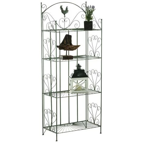 Eine Beschichtung (pulverbeschichtetes Eisen) macht dieses Regal sehr hochwertig und extrem langlebig. Die liebevollen Verzierungen im Landhausstil sehen sehr schön aus und verleihen einen antiken Charakter. Das Regal kann bei Bedarf zusammengeklappt werden!