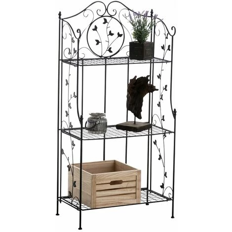 Eine Beschichtung (pulverbeschichtetes Eisen) macht dieses Regal sehr hochwertig und extrem langlebig. Die liebevollen Verzierungen im Landhausstil sehen sehr schön aus und verleihen einen antiken Charakter.