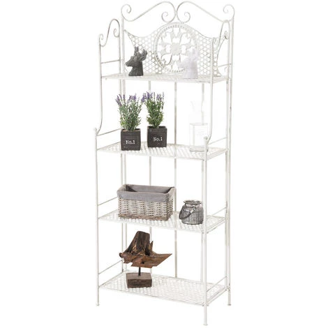 Eine Beschichtung (pulverbeschichtetes Eisen) macht dieses Regal sehr hochwertig und extrem langlebig. Die liebevollen Verzierungen im Landhausstil sehen sehr schön aus und verleihen einen antiken Charakter.