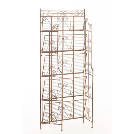 Eine Beschichtung (pulverbeschichtetes Eisen) macht dieses Klappregal sehr hochwertig und extrem langlebig. Die liebevollen Verzierungen im Landhausstil sehen sehr schön aus und verleihen einen antiken Charakter. Das Regal kann bei Bedarf zusammengeklappt werden!