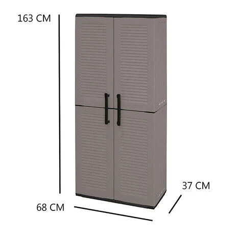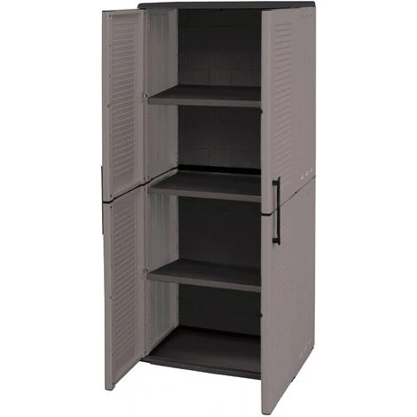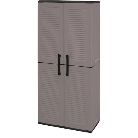 STRUKTUR UND VERWENDUNG – Seine Struktur besteht aus H�henverstellbaren Regalen, die nicht nur die Optimierung der Innenräume ermöglichen, sondern auch hohe Lasten aufnehmen können, die der Struktur maximale Stabilität garantieren – Die obere Auflagefläche bedeckt den Rand des Tür, für eine bessere Abdichtung gegen das Eindringen von Wasser – Die Türen sind mit verschleißfesten Stahlscharnieren und vertikalen Griffen ausgestattet, die das Öffnen erleichtern – Innen ist der Besenhalter mit Haken ausgestattet – Perfekt für den Außenbereich, als Balkon, Terrasse, Garten u Innenhof, sowohl intern, als Keller, Abstellraum und unter der Treppe.