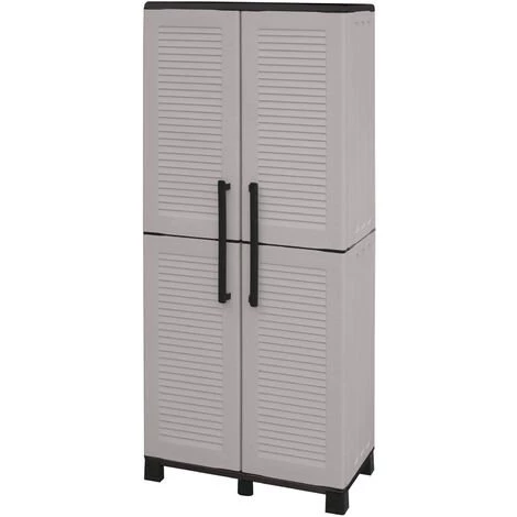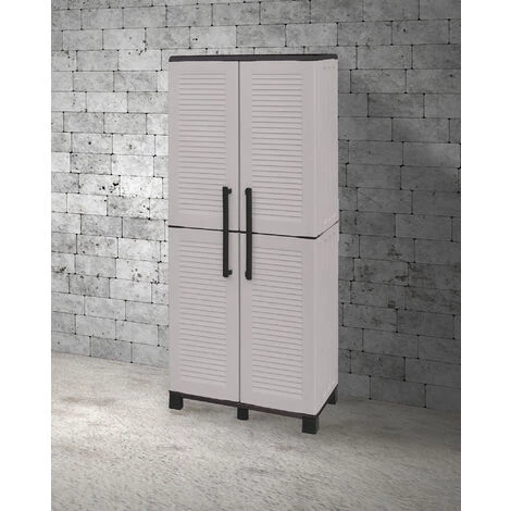 STRUKTUR UND VERWENDUNG – Seine Struktur besteht aus H�henverstellbaren Regalen, die nicht nur die Optimierung der Innenräume ermöglichen, sondern auch hohe Lasten aufnehmen können, die der Struktur maximale Stabilität garantieren – Die obere Auflagefläche bedeckt den Rand des Tür, für eine bessere Abdichtung gegen das Eindringen von Wasser – Die Türen sind mit verschleißfesten Stahlscharnieren und vertikalen Griffen ausgestattet, die das Öffnen erleichtern – Die Füße ermöglichen eine einfache Reinigung des Bodens unter dem Produkt – Perfekt für den Außenbereich, als Balkon, Terrasse, Garten und Hof, beide drinnen, als Keller, Abstellraum und unter der Treppe.