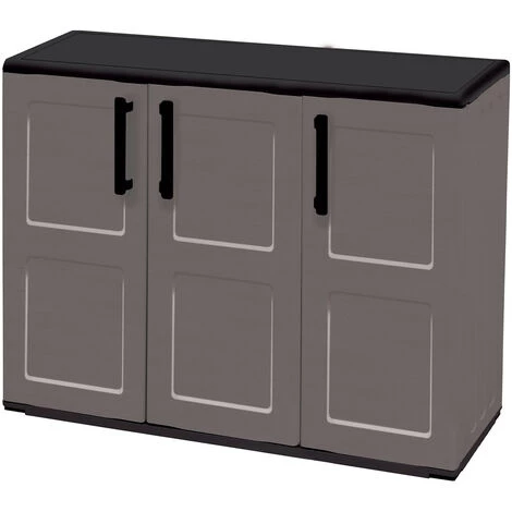 MEHRZWECKSCHRANK – Mehrzweckschrank mit drei Türen und einem verstellbaren Innenboden, ganz in grauer Farbe.