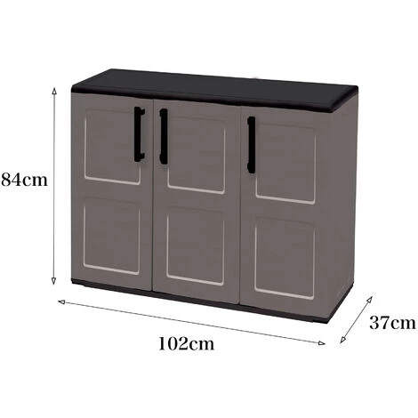 STRUKTUR UND VERWENDUNG – Seine Struktur besteht aus H�henverstellbaren Regalen, die nicht nur die Optimierung der Innenräume ermöglichen, sondern auch hohe Lasten aufnehmen können, die der Struktur maximale Stabilität garantieren – Die obere Auflagefläche bedeckt den Rand des Tür, für eine bessere Abdichtung gegen das Eindringen von Wasser – Die Türen sind mit verschleißfesten Stahlscharnieren und vertikalen Griffen ausgestattet, die das Öffnen erleichtern – Perfekt für den Außenbereich, wie Balkon, Terrasse, Garten und Hof, sowohl im Innenbereich als auch als Keller, Schrank und unter der Treppe.