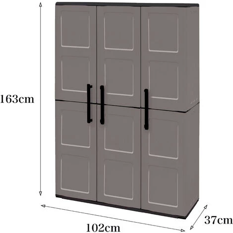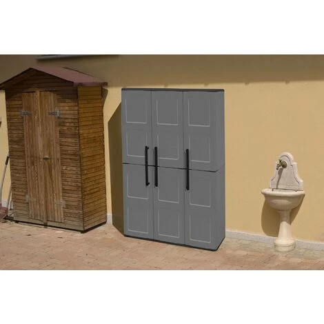STRUKTUR UND VERWENDUNG – Seine Struktur besteht aus H�henverstellbaren Regalen, die nicht nur die Optimierung der Innenräume ermöglichen, sondern auch hohe Lasten aufnehmen können, die der Struktur maximale Stabilität garantieren – Die obere Auflagefläche bedeckt den Rand des Tür, für eine bessere Abdichtung gegen das Eindringen von Wasser – Die Türen sind mit verschleißfesten Stahlscharnieren und vertikalen Griffen ausgestattet, die das Öffnen erleichtern – Innen ist der Besenhalter mit Haken ausgestattet – Perfekt für den Außenbereich, als Balkon, Terrasse, Garten u Innenhof, sowohl intern, als Keller, Abstellraum und unter der Treppe.