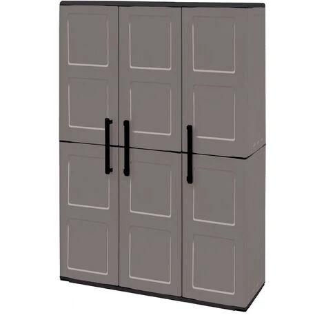 BESENSCHRANK – Besenschrank mit drei Türen und drei verstellbaren Einlegeböden, ganz in grau.