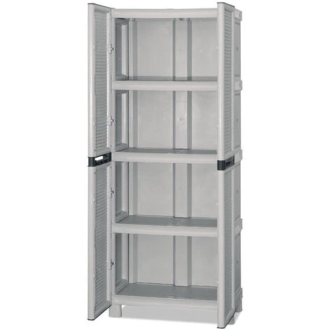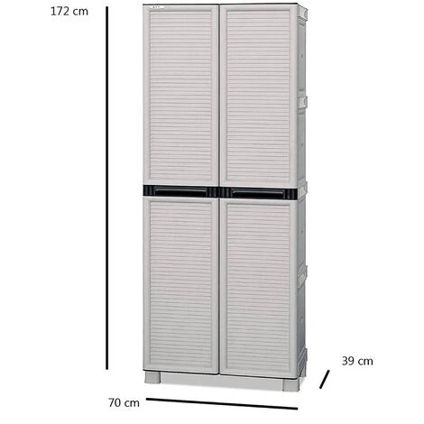 STRUKTUR UND VERWENDUNG – Seine Struktur ist vollständig modular mit allen Artikeln der gleichen Linie: Dank der geschichteten Konstruktion sind die Wände tragend und die integrierten Regale, die mit dem ISS-System gebaut wurden, können hohe Lasten tragen, was maximale Stabilität garantiert Struktur – Die Türen werden nicht vom oberen Teil des Schranks überragt, um ein perfektes Öffnen zu gewährleisten, sie sind mit verschleißfesten Stahlscharnieren ausgestattet – Die Füße ermöglichen eine einfache Reinigung des Bodens unter dem Produkt – Perfekt für den Außenbereich, ZB Balkon , Terrasse, Garten und Innenhof , beide intern, als Keller, Abstellraum und unter der Treppe.