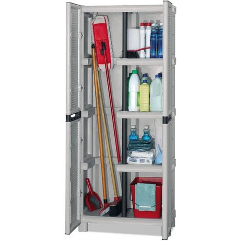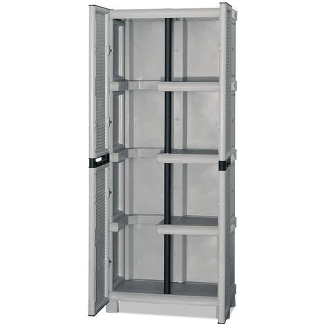 STRUKTUR UND VERWENDUNG – Seine Struktur ist vollständig modular mit allen Artikeln der gleichen Linie: Dank der geschichteten Konstruktion sind die Wände tragend und die integrierten Regale, die mit dem ISS-System gebaut wurden, können hohe Lasten tragen, was maximale Stabilität garantiert Struktur – Die Türen werden nicht vom oberen Teil des Schranks überragt, um ein perfektes Öffnen zu gewährleisten, sie sind mit verschleißfesten Stahlscharnieren ausgestattet – Die Füße ermöglichen eine einfache Reinigung des Bodens unter dem Produkt – Innen mit Besenhaken ausgestattet – Perfekt für Außenbereich, als Balkon, Terrasse, Garten und Innenhof, sowohl im Innenbereich als auch als Keller, Abstellraum und unter der Treppe.