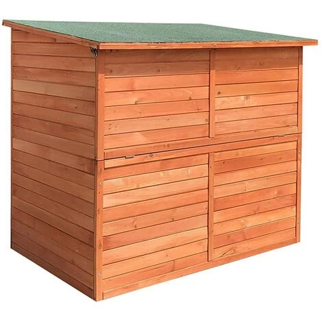 Erhöhte Hütte Pool-Reiniger / Mehrzweck Schrank: ideal für den Außenbereich mit viel Stauraum für alle Objekte wie Poolreinigungs- oder Filteranlagen. Es kann auch zur Aufbewahrung der Mülltonnen verwendet werden, die den Garten optisch stören. Es hat ein Klappdach für einen leichten Zugang zum Innenraum und eine aufklappbare Frontblende, die für einen leichten Zugang heruntergeklappt werden kann. Sein widerstandsfähiges Holz hat eine spezielle Oberflächenbehandlung für den Außenbereich ( empfohlene Pflege des Holzes mit Lasur ). Das Dach besteht aus einem wasserdichten Asphaltstoff, der jeden Gegenstand im Inneren vor Feuchtigkeit schützen kann.