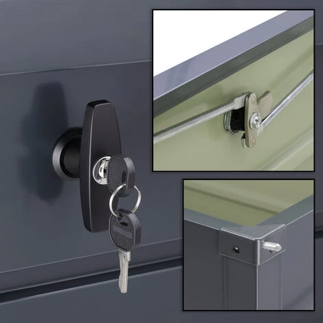 Die hochwertige Gartentruhe besteht aus pulverbeschichtetem, rostfreien, verzinktem und UV-beständigem Metall und ist besonders stabil sowie langlebig. Der Truhen Boden kann bis zu 100kg und der Deckel mit bis zu 60kg belastet werden. So können Sie Problemlos auch Gartengeräte in der Box lagern. Zudem ist die Aufbewahrungsbox wasserdicht, wodurch sie den perfekten Schutz vor Wind und Wetter bietet. Die beiden wartungsfreien Gasdruckfedern helfen beim leichten öffnen und schließen des Deckels.