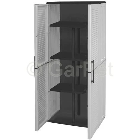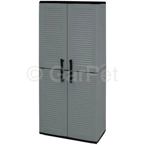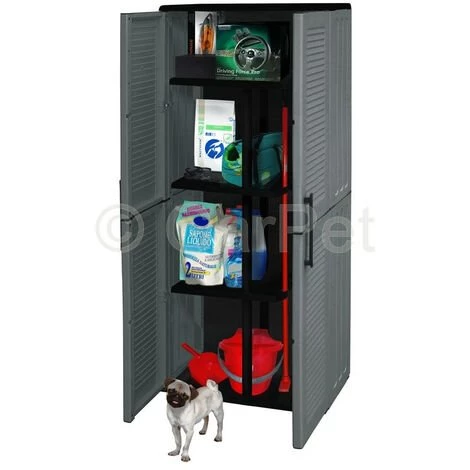 Zweitüriger Hauswirtschaftsschrank in welchem Sie ausreichend Platz für allerlei notwendige Dinge wie Reiniger, Besen, Schrubber, Schwämme, Lappen, Eimer, Bügeleisen und vieles mehr finden.