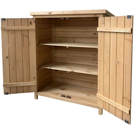 Holzschrank für den Außenbereich mit hoher Witterungsbeständigkeit. Das Holz, aus dem es hergestellt ist, hat zwei Schichten wasserfester Farbe. Außerdem hat dieses Modell ein wasserdichtes Asphaltdach. Der Zugang erfolgt durch zwei Falttüren, um Gartengeräte in den drei großen Lagerbereichen zu lagern und zu schützen. Es hat Beine, um es vom Boden isolieren zu können, es hat auch einen Rücken und einen Boden. Es kann zur Aufbewahrung von Handtüchern im Poolbereich, dem Reiniger, Filter usw. verwendet werden. Es hat Griffe zum öffnen seiner Türen. Seine Hauptmerkmale sind: – Außenmaße: 40 x 75 x 90 cm. – Robuste Struktur aus widerstandsfähigem und stabilem Kiefernholz. – Ideal für kleine Lagerräume. – Sie hat Griffe, um das öffnen der Türen zu erleichtern. * Wir empfehlen zusätzlichen Platz, da die Maße aufgrund der Beschaffenheit des Holzes nur ungefähr sind.
