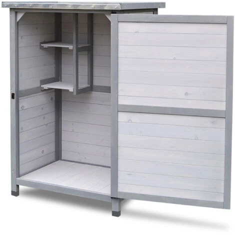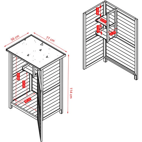 Der zweifarbige Gartenschrank eignet sich hervorragend zur Lagerung Ihrer Gartengeräte, Werkzeuge oder für Grillzubehör. Der Schrank enthält zwei Regalböden, die auf einer Seite eingelegt werden können – hier können kleine Geräte und Zubehör verstaut werden. So bleibt eine Hälfte für größere Werkzeuge mit Stiel frei. Seine Tür wird mit einem Riegel verschlossen und setzt mit den hochwertigen schwarzen Beschlägen ein kleines optisches Highlight. Das Dach besteht aus Blech, welches den Schrank vor Regen und Nässe schützt. Eine leichte Neigung lässt Regenwasser abfließen und durch den Dachüberstand bleiben auch die Seiten und Rückwand trocken. Die Kunststoffüberzüge an den Füßen schützen zudem vor Bodennässe.