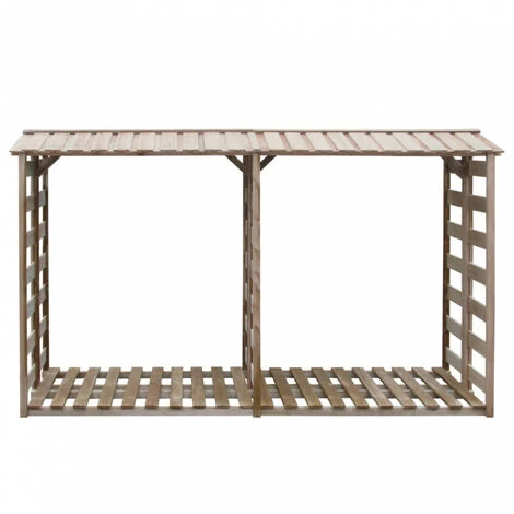 Dieser Feuerholz-Lagerschuppen aus Holz ist eine effiziente Lösung für die Aufbewahrung Ihres Kaminholzes. Dieser Feuerholz-Lagerschuppen ist aus hochwertigem, druckimprägniertem Kiefernholz gefertigt, wodurch er sehr robust, langlebig und verrottungsresistent ist. Der Schuppen hat ein schräges Dach, um das Feuerholz vor Regen und Schnee zu schützen. Eine Lattenkonstruktion an den Seiten sorgt für eine ausreichende Luftzirkulation, während der erhöhte Boden das Aufsteigen von Nässe verhindert. Der Aufbau ist einfach. Bitte beachten Sie, dass Holz ein Naturprodukt ist und Unregelmäßigkeiten aufweisen kann.