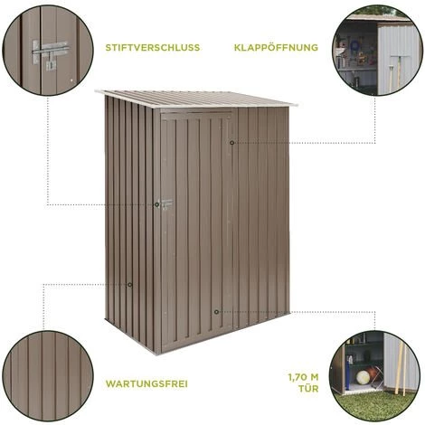 Der Gjöll Schrank aus verzinktem Stahl passt dank seiner kompakten Größe perfekt in jeden Raum. Mit einem Fassungsvermögen von 1,27 m 2 hat er die Kapazität, all jene Terrassen- oder Gartenelemente zu lagern und zu organisieren, die in unserem Haus noch nie einen Platz hatten (Gartengeräte, Töpfe, Bewässerungselemente, Stühle, Kissen, Spielzeug …)