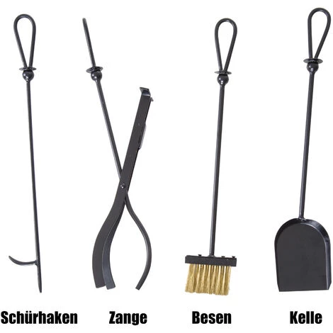 - ✓ Mit 4-teiligem Kaminbesteck (Schaufel, Besen, Schürhaken und Zange)