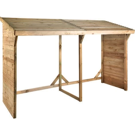 Der Brennholzunterstand Split mit Regalablagen ist ein Muss für Ihre Outdoor-Gestaltung, damit Sie Ihr Brennholz immer griffbereit haben. Zur vor Witterungseinflüssen geschützten Lagerung Ihres Brennholzes an einem belüfteten Ort. Geeignet für Holzscheite in Standardgröße (33-40-50 cm).Vormontiert geliefert. Boden nicht im Lieferumfang enthalten. Wasserdichte Überdachung aus Holz. Dieses Produkt ist autoklavbehandelt und dadurch ausgezeichnet gegen alle schädigenden äußeren Einflüsse geschützt. Das FSC-Siegel garantiert die Herkunft des Holzes aus nachhaltig bewirtschafteten Wäldern.