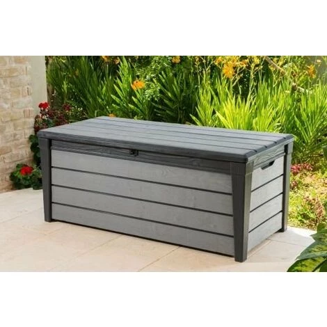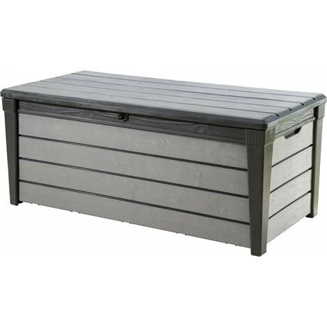 Die praktische Keter Aufbewahrungsbox ist die ideale Aufbewahrungsmöglichkeit für alle Utensilien in Haus und Garten. Mit ihrer natürlich rauen Holzoptik und der streichbaren Oberfläche lässt sie sich individuell gestalten. So passt sie in jeden Garten und wird zum echten Hingucker. Gleichzeitig können bequem 2 Erwachsene auf dieser Box Platz nehmen – für zusätzliche Sitzgelegenheit ist somit gesorgt. Ob Stuhlauflagen oder andere Gartenaccessoires, alles lässt sich einfach und sicher in der geräumigen und stabilen Box verstauen. Lieferumfang: Schloss nicht im Lieferumfang enthaltenMaterial: Polypropylen Nutzinhalt: 455 Liter Maße: 145 x 69,7 x 60,3 cm (B x T x H) max. Deckelbelastung: 365 kg streichbare Oberfläche mit Sitzfunktion für 2 Personen abschließbar einfache Montage leichtes Öffnen des Deckels durch Gasdruckfedern Wetter- und UV-beständig