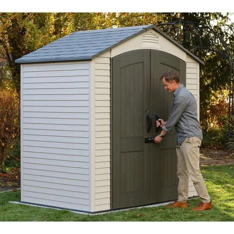 Die robusten Lifetime-Gerätehäuser sind für den ganzjährigen Outdoor-Betrieb konstruiert und absolut wetterfest und UV-beständig. Die große Doppeltür rmöglicht einen einfachen Zugang und unkompliziertes Verstauen Ihrer Gerätschaften. Dank der glatten, lichtgrauen Wandoberfläche fügt sich das Gerätehaus natürlich und unaufdringlich in nahezu jeden Garten ein. Auch um die Wartung des Gerätehauses müssen Sie sich keine Gedanken machen: Der hochwertige Kunststoff ist äußerst pflegeleicht und wartungsfrei.
