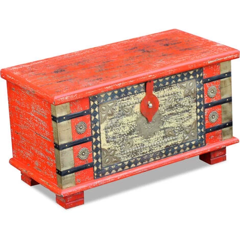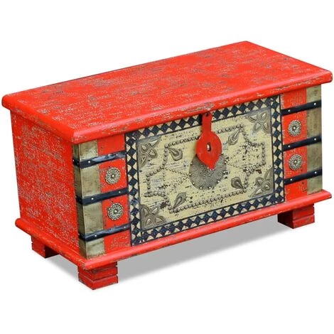 Diese Aufbewahrungstruhe im Antik-Stil wird eine einzigartige Ergänzung für Ihren Raum sein. Seine Massivholzkonstruktion macht sie stabil und zu einem sicheren Abstellplatz für Getränke, Obstkörbe oder Dekorationen. Wenn Sie die Truhe aufschließen (Schloss ist nicht im Lieferumfang enthalten), können Sie leicht eine große Anzahl von Gegenständen verstauen. Sie kann auch als dekorative Truhe oder Kaffeetisch verwendet werden. Hergestellt aus Mangoholz, der Tisch ist stabil, langlebig und wunderschön. Das Antik-Finish und die dekorativen Muster verleihen jedem Stück seine eigene Geschichte und das einzigartige Aussehen. Diese Indische Truhe ist komplett handgefertigt. Jeder Schritt, von der Zusammensetzung des Holzes über die Polieren und Bemalung bis hin zur Lackierung, wurde mit größter Sorgfalt durchgeführt.