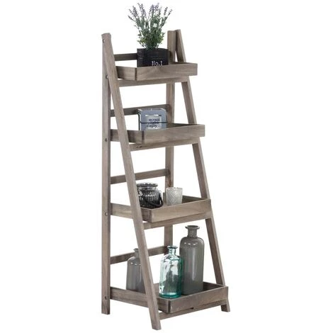 Unser modisches Treppenregal Dorin im Landhausstil ist ein echter Hingucker! Durch seine 4 praktischen Regalablagen ist es individuell einsetzbar und bietet viel Stauraum für jeden Wohnbereich. Ob im Schlafzimmer, Flur, Arbeits- oder Wohnzimmer – mit diesem Stufenregal können Sie gezielt Akzente setzen und ein gemütliches und zugleich aufgeräumtes Ambiente schaffen. Außerdem kann das Regal bei Bedarf einfach zusammengeklappt werden. Probieren Sie verschiedene Stellmöglichkeiten aus, die Ihnen gefallen; mit diesem bezaubernden Wohnaccessoire stehen Ihnen alle Möglichkeiten offen. Dekoration nicht enthalten.