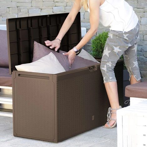 Egal welche Jahreszeit diese Auflagenbox ist immer einsetzbar. Leicht, praktisch und wasserdicht ist ein echter Grund sich für diese Gartentruhe zu entscheiden.