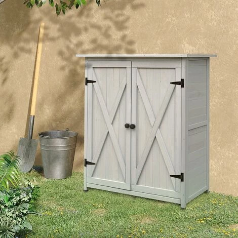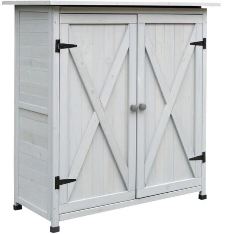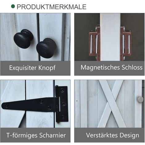 Um Ihren Garten in Schuss zu halten, benötigen Sie eine Menge Werkzeuge und Geräte, und es kann ebenso schwierig sein, den nötigen Platz zu finden, um sie aufzubewahren und in bestem Zustand zu halten. Die beiden Türen bieten einen einfachen Zugang zum Inneren. Fußstützen sorgen für zusätzliche Stabilität, während die Asphaltabdeckung auf dem Dach verhindert, dass Wasser ins Innere eindringt. Der Werkzeugschrank von Outsunny ist ideal für alle Arten von Gärten und Außenbereichen.