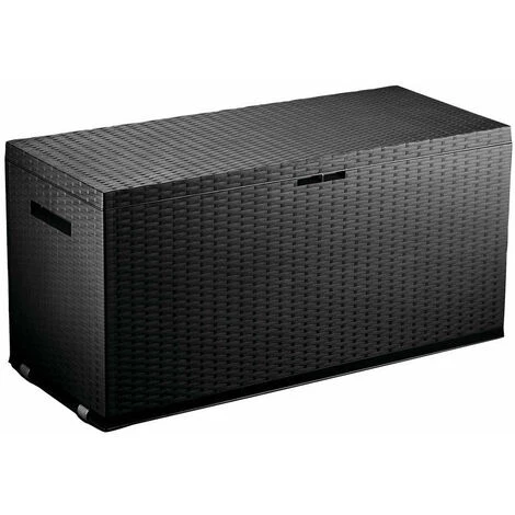 Mit der geräumigen Gartentruhe „Nizza“ sorgen Sie für Ordnung in Ihrem Garten, auf dem Balkon oder der Terrasse. Mit der Gartenbox können Sie ganz einfach Gartengeräte oder Spielzeuge verstauen. Auch zum Verstauen von Kissen ist die Box bestens geeignet. Sie ist passend für mindestens 6 Stuhlauflagen in den Maßen ca. 120×50 cm. Da die Kissenbox aus widerstansdfähigem und witterungsfestem Kunststoff besteht, ist sie ideal für den Outdoorbereich geeignet. Durch zwei Rollen und seitlich angebrachten Tragegriffen ist die Box leicht zu transportieren. Die Kissenbox kann bis zu 30 kg belastet werden und hat einen abschließbaren Deckel. Bei Beschmutzung kann die Gartentruhe einfach mit warmer Seifenlauge oder normalem Haushaltsreiniger abgewaschen werden.