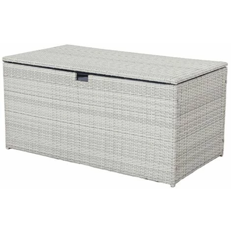 Diese Auflagenbox ist die optimale Aufbewahrungsmöglichkeit für ihre Polsterauflagen, Decken, Spielzeug u.v.m. Die Box besteh aus einem witterungsbeständigen Kunststoffgeflecht. Die Farbe glacier grey ist passend zu unseren Serien Santorin und Caldera.Farbe: glacier greyMaße: 145 x 80 cmHöhe: 70 cmGestell: pulverbeschichteter Aluminium RahmenMaterial: witterungsbeständiges Kunststoffgeflechtinkl. Schutzhülleim Winter bitte trocken lagern