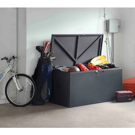 Mit 509 Liter Volumen ist die Kissenbox bestens geeignet um Auflagen, Spielzeug, Gartengeräte oder Poolzubehör aufzubewahren.