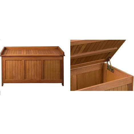 Unsere Kissenbox ist aus witterungsbeständigen, robusten und FSC zertifiziertem Shorea Hartholz gefertigt. Das Holz der Gartenbox ist mit Öl vorbehandelt.