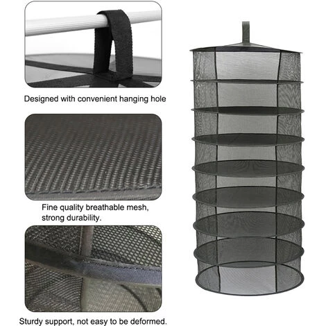 Sehr bequemes und praktisches Trocknungsnetz, ideal zum Trocknen von Kräutern, Knospen, Bohnen, Pflanzen, Blumen usw.! Hergestellt aus feinem Mesh-Material, sicher und ungiftig. Robuste Struktur und starke Haltbarkeit, und der eingebaute Stahldrahtring in jeder Schicht bietet robusten Halt, perfekt für den Langzeitgebrauch.