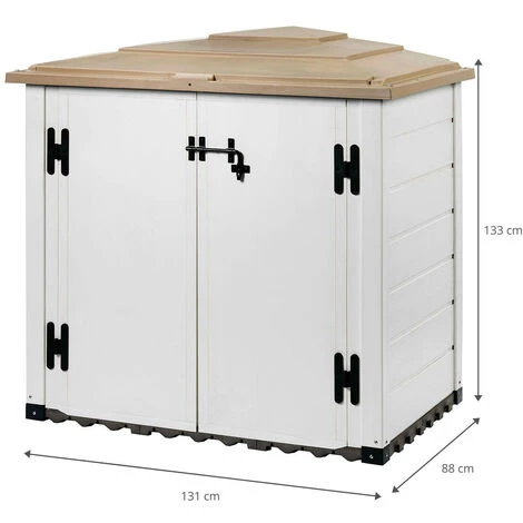 Diese Harztruhe hat ein attraktives Design und ermöglicht es Ihnen, kleine Gartenartikel und verschiedene Gegenstände, die wir aus verschiedenen Gründen lieber sicher aufbewahren, zu schützen und zu lagern, ohne dass ihre Anwesenheit den Raum überlastet. Die Doppelflügeltür hat ein Schutzschloss und einen Klappdeckel mit Gaskissen. Mit Herstellergarantie, Gardiun. Außenmaße: 88 (L) x 131 (B) x 133 (H) cm. Innenmaße: 116 x 76 cm. Gewicht: 45 Kg . Material: Harz. Türgröße: 100 (B) x 100 (H) cm. Türtyp: Doppelfaltung. Art der Verbindung : Schrauben und Klammern. Farbe: Weiß / Beige. Deck: Einsitzer. Stockwerk: Ja . Fenster: Nein. Empfohlener Platz: 100×150
