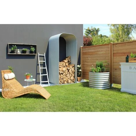 Das Kaminholzregal Ardor aus Zincalume® ist eine moderne und elegante Art und Weise, Kaminholz vor direkten Wettereinflüssen geschützt im Freien zu lagern.