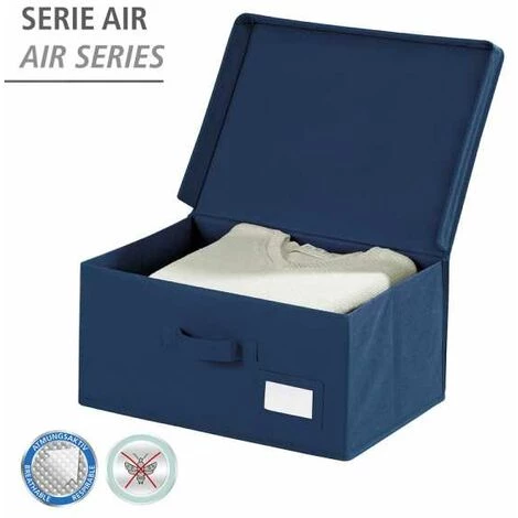 Die dekorative Aufbewahrungsbox Air eignet sich ideal zur staubfreien und atmungsaktiven Aufbewahrung von Kleidung, Zeitschriften, Fotos, etc. Sie ist mit einem praktischen Klappdeckel ausgestattet. Durch das Beschriftungsfeld weiß man immer sofort, was die Box enthält, ohne sie zu öffnen. Mit dem praktischen Henkel kann die Box leicht hervorgezogen werden. Die Box ist bei Nichtgebrauch platzsparend zusammenlegbar und eignet sich dadurch auch ideal für die Reise und für den vielfältigen Einsatz im ganzen Haushalt.Maße (B x H x T): 44 x 19 x 33 cm