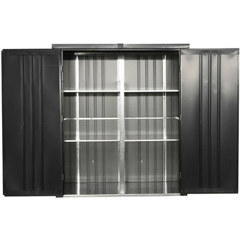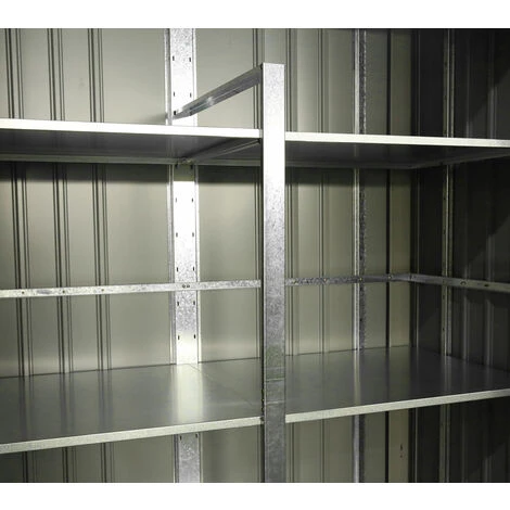 Das Regal ist durch galvanisch verzinktes Stahlblech in Silber äußerst robust, witterungsbeständig und stabil und somit bestens für den Garten- und Outdoorbereich geeignet. So können Sie nicht nur große Gartengeräte verstauen, sondern auch kleinere Utensilien wie Gießkanne, Gartenharke und Co. finden hier ihren Platz – sicher und witterungsgeschützt verstaut.