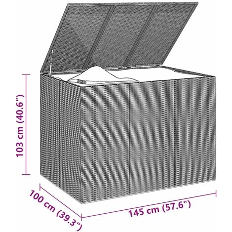 Diese einfache Garten-Kissenbox aus PE-Rattan ist eine ideale Wahl für die Aufbewahrung von Kissen, Kissen, zusätzlichen Decken, Handtüchern, Haushaltskram und vielem mehr. Diese Gartenbox hat einen stabilen, pulverbeschichteten Stahlrahmen, der sehr langlebig ist. Dank des witterungsbeständigen PE-Rattans ist die Aufbewahrungstruhe pflegeleicht, strapazierfähig und sowohl für den Außen- als auch für den Innenbereich geeignet. Außerdem schützt die wasserabweisende PE-Innentasche mit Deckel und Reißverschluss Ihre Gegenstände vor Feuchtigkeit. Darüber hinaus verfügt die Kissenbox über eine Gasdruckfeder, die das Öffnen und Schließen erleichtert und Finger und Hände vor versehentlichem Schließen schützt. Hinweis:Um die Lebensdauer Ihrer Gartenmöbel zu verlängern, empfehlen wir Ihnen, diese regelmäßig zu reinigen und im Freien vor Niederschlägen oder starken Sonnenstrahlen zu schützen.Reinigung: Verwenden Sie eine milde Seifenlösung.Lagerung:Wenn möglich, an einem kühlen, trockenen Ort im Innenbereich lagern. Wenn das Produkt im Freien gelagert wird, schützen Sie es mit einer wasserdichten Abdeckung. Wischen und trocknen Sie das überschüssige Wasser oder den Schnee nach Regen oder Schneefall von ebenen Flächen. Sorgen Sie für eine ausreichende Luftzirkulation, um feuchtigkeitsbedingte Schäden zu vermeiden.