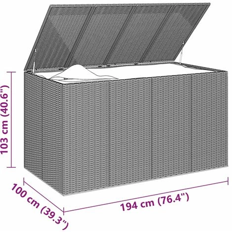 Diese einfache Garten-Kissenbox aus PE-Rattan ist eine ideale Wahl für die Aufbewahrung von Kissen, Kissen, zusätzlichen Decken, Handtüchern, Haushaltskram und vielem mehr. Diese Gartenbox hat einen stabilen, pulverbeschichteten Stahlrahmen, der sehr langlebig ist. Dank des witterungsbeständigen PE-Rattans ist die Aufbewahrungstruhe pflegeleicht, strapazierfähig und sowohl für den Außen- als auch für den Innenbereich geeignet. Außerdem schützt die wasserabweisende PE-Innentasche mit Deckel und Reißverschluss Ihre Gegenstände vor Feuchtigkeit. Darüber hinaus verfügt die Kissenbox über eine Gasdruckfeder, die das Öffnen und Schließen erleichtert und Finger und Hände vor versehentlichem Schließen schützt. Hinweis:Um die Lebensdauer Ihrer Gartenmöbel zu verlängern, empfehlen wir Ihnen, diese regelmäßig zu reinigen und im Freien vor Niederschlägen oder starken Sonnenstrahlen zu schützen.Reinigung: Verwenden Sie eine milde Seifenlösung.Lagerung:Wenn möglich, an einem kühlen, trockenen Ort im Innenbereich lagern. Wenn das Produkt im Freien gelagert wird, schützen Sie es mit einer wasserdichten Abdeckung. Wischen und trocknen Sie das überschüssige Wasser oder den Schnee nach Regen oder Schneefall von ebenen Flächen. Sorgen Sie für eine ausreichende Luftzirkulation, um feuchtigkeitsbedingte Schäden zu vermeiden.