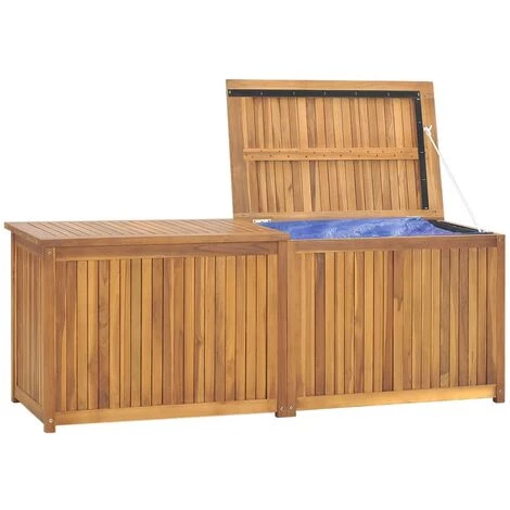 Mit einem leicht zu öffnenden Deckel bietet diese Gartenbox viel Platz zum Verstauen von Werkzeugen und anderen Utensilien.Erstklassiges Material: Massives Teakholz ist ein wunderschönes Naturmaterial. Es wurde abgelagert, getrocknet und anschließend fein geschliffen, um eine sehr glatte Optik und Haptik zu erhalten. Teakholz ist sehr stark und witterungsbeständig.Geräumig: Die geräumige Gartentruhe kann zur Aufbewahrung von Auflagen, Decken, Kinderspielzeug, Gartengeräten und anderem Zubehör verwendet werden. Der Inhalt bleibt geschützt und ordentlich aufbewahrt.Ausstattung: Im Inneren befindet sich eine PE-Auskleidung. Sie ist sehr nützlich, um den Inhalt trocken und sauber zu halten.Anwendung: Diese Gartenbox eignet sich ideal für den Einsatz im Garten, auf der Terrasse, im Geräteschuppen oder in der Garage.